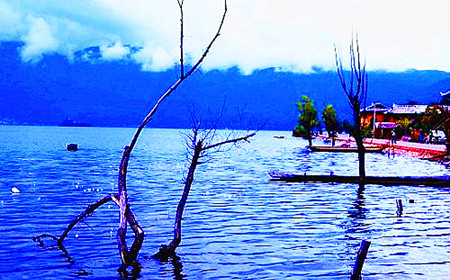 昆明滇池:云南最大的高原湖泊,大都是内陆湖,雪山上的水流下来,水色深蓝,加之雪山倒影,更加景色宜人。